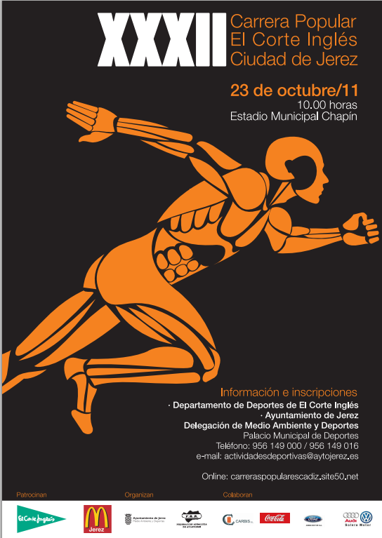 Este Domingo día 23 de Octubre de 2011 se celebra la XXXII Carrera Popular Ciudad de Jerez, toda una clásica entre las carreras populares. Es una prueba muy interesante sobre todo por la corta distancia (unos 8,3 km), en la que puedes recortar tu tiempo al máximo y ver de que eres capaz. Ademas es todo llano, que como pasa en mi caso es de agradecer de vez en cuando, ya que donde vivo salir a entrenar es sinónimo de subidas y bajadas.